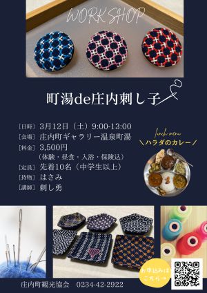 【満員御礼】「町湯de庄内刺し子」参加者募集