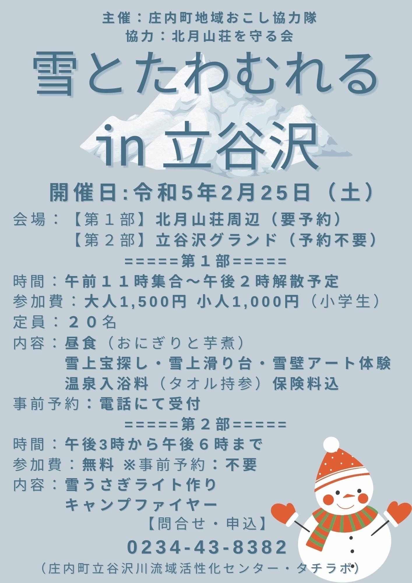 庄内町地域おこし協力隊の皆さんが、立谷沢地区で雪まつりイベントを開催いたします⛄