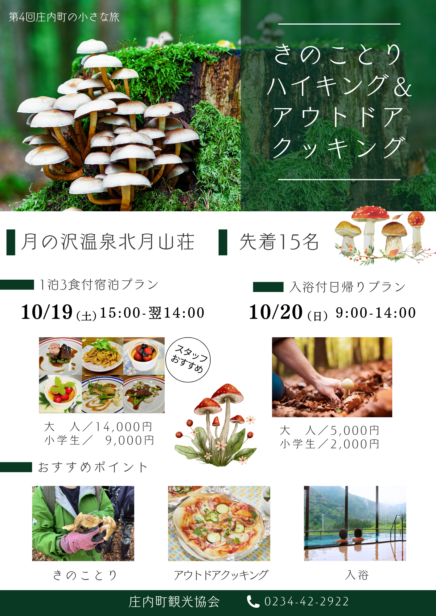 第4回庄内町の小さな旅「きのことりハイキング&アウトドアクッキング」参加者募集