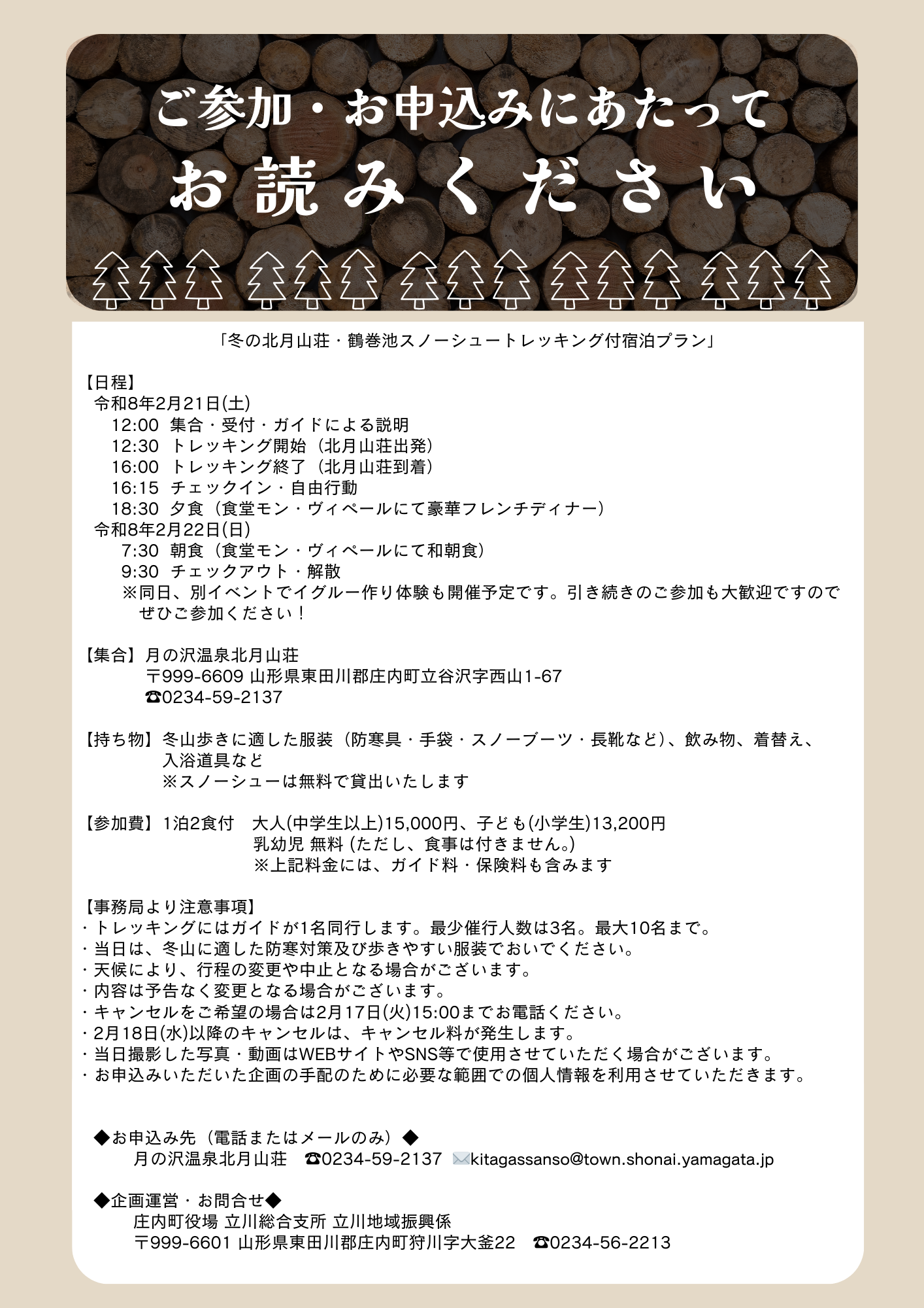 ※ご予約先:月の沢温泉北月山荘0234-59-2137
