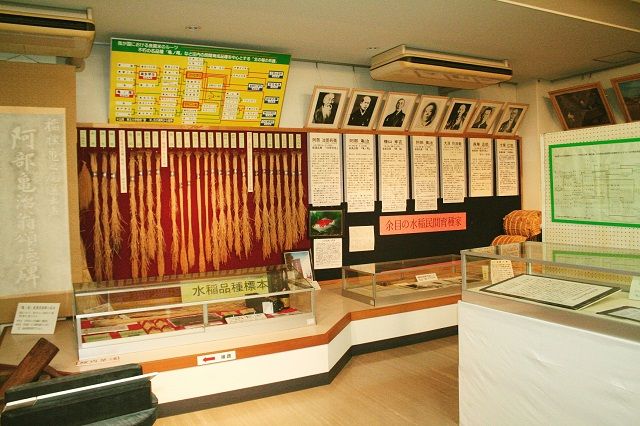 阿部亀治をはじめとする7人の水稲育種家の功績や昔の農具・民具などを展示しています