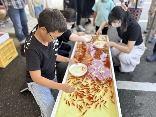 お子さんにはバルーンアートやバッテリーカー、金魚すくい大会もあり人気。